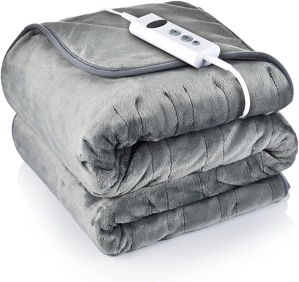 Why Choose electric heated throw, 135x185cm large electric blanket soft flannel over blanket with 10 adjustable temperature levels, 9 hours timer, fast heating and machine-washable electric over blanket?