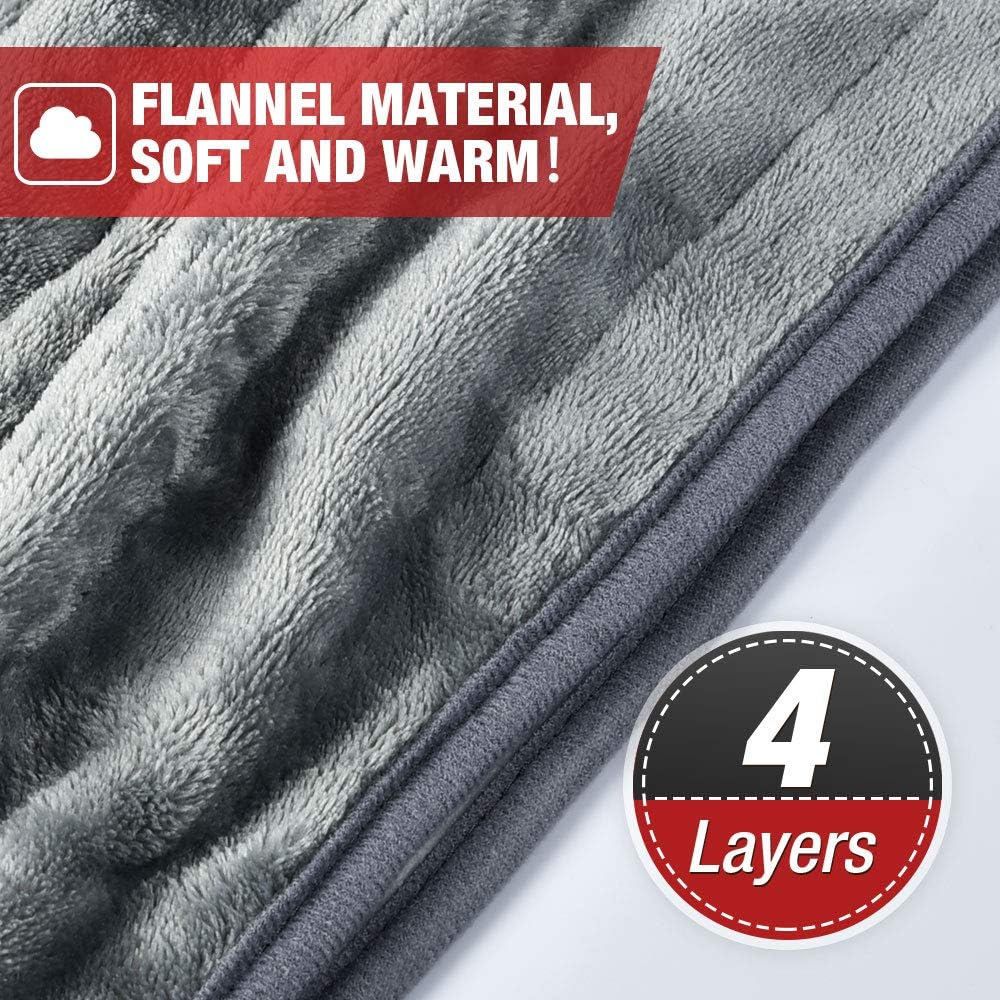 Key Benefits of electric heated throw, 135x185cm large electric blanket soft flannel over blanket with 10 adjustable temperature levels, 9 hours timer, fast heating and machine-washable electric over blanket